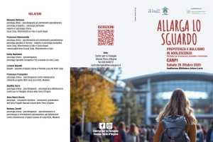 Rifornimento in Volo ha partecipato al convegno “Allarga lo sguardo. Prepotenza e bullismo in adolescenza”, promosso dal Centro per le Famiglie dell’Unione delle Terre d’Argine in collaborazione con il Servizio Sanitario Regionale Emilia-Romagna e l’AUSL di Modena, svoltosi il 25 ottobre 2025 presso la Biblioteca Arturo Loria di Carpi.
